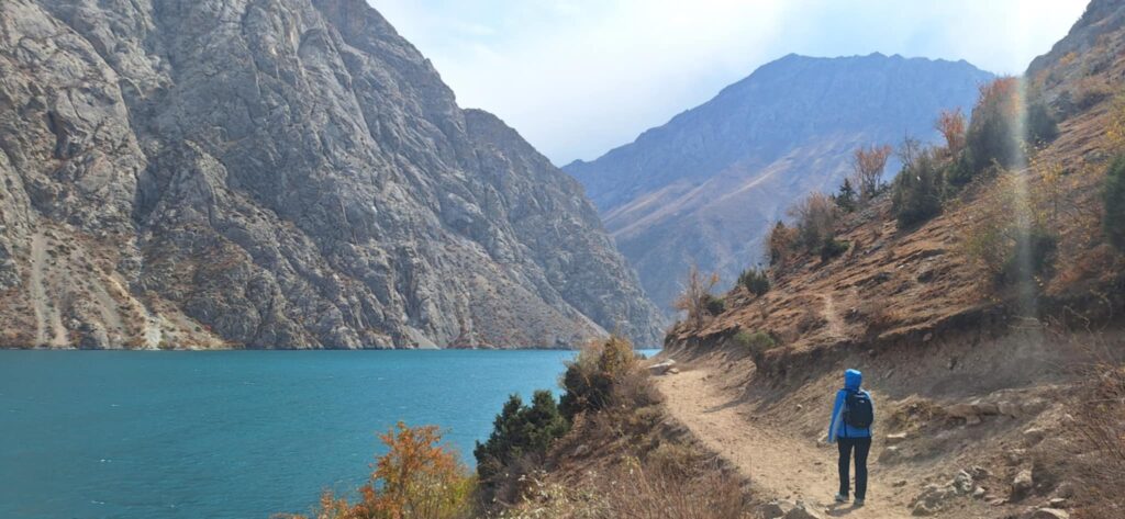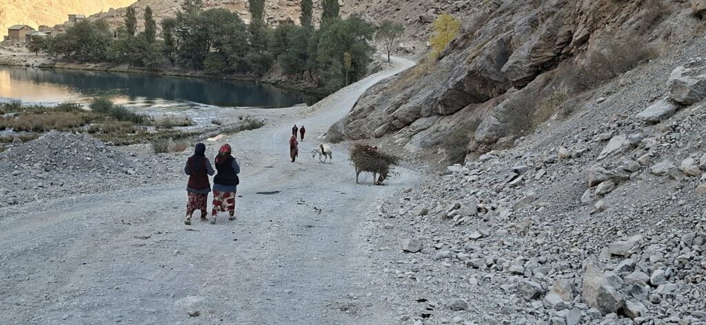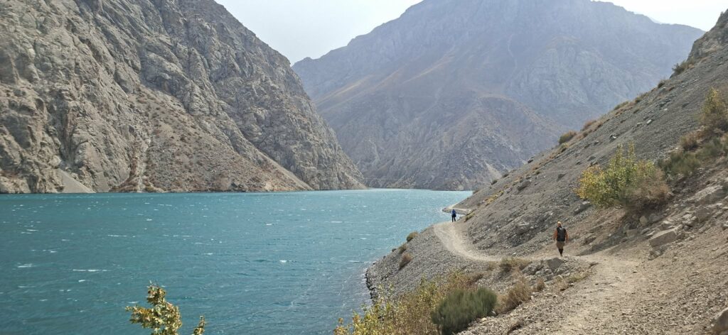Pomimo, że łączyła je jedna rzeka każde kolejne jezioro okazywało się zupełnie inne od poprzednich. To była bardzo urozmaicona, piękna i romantyczna trasa. Romantyczna dla nas, bo mieszkańcy wiosek (często dzieci) wędrujący ze swoimi osiołkami objuczonymi gałęziami, żywnością lub kamieniami raczej inaczej ją odbierali. Minęliśmy szóste jezioro i okazało się, że droga dla samochodów prowadzi dalej – według informacji od naszego gospodarza do siódmego jeziora prowadziła tylko piesza ścieżka. Więc droga musiała być dopiero co wykuta w skałach i prowadziła do niewielkiego parkingu przed siódmym jeziorem. Stało tam kilka samochodów z turystami, między innymi kilka osób z Polski. Jedna z kobiet bliska płaczu zbierała się do drogi powrotnej – turyści wyruszający na tą jednodniową wycieczkę z Samarkandy nie są uprzedzani jak wygląda droga i ile godzin spędzą telepiąc się w rozklekotanej terenówce na górskiej drodze.