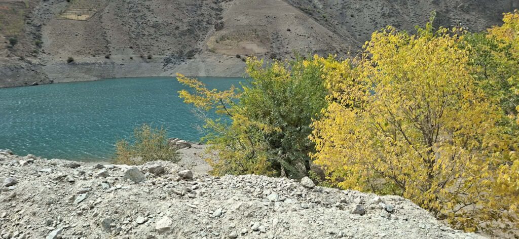 Tego dnia doliną jechało wielu turystów. Droga pomiędzy trzecim a drugim jeziorem prowadziła bardzo stromo w dół. Samochody rzęziły na najniższych biegach i wzbijały ogromny kurz. Dlatego po dojściu do drugiego jeziora postanowiłyśmy znaleźć miejsce na chwilę odpoczynku i powrót do domu. Miejsce znalazło się przepiękne – właściciele budowanego hotelu pozwolili nam skorzystać z tarasu widokowego i ławeczki z przepięknym widokiem na jezioro i skały nas drugim jego brzegu. Spędziłyśmy tam sporo czasu obserwując zmieniający się kolor wody i życie kłębiące się pod jej powierzchnią. Stada maleńkich rybek przypływały do ciepłej płytkiej wody przy brzegu i co chwila uciekały spłoszone naszym najmniejszym ruchem. Na krzakach i kwiatach wyrastających ze szczelin w skałach skakały ptaki. Pomimo odgłosów budowy i warkotu samochodów z drogi – było sielsko.
